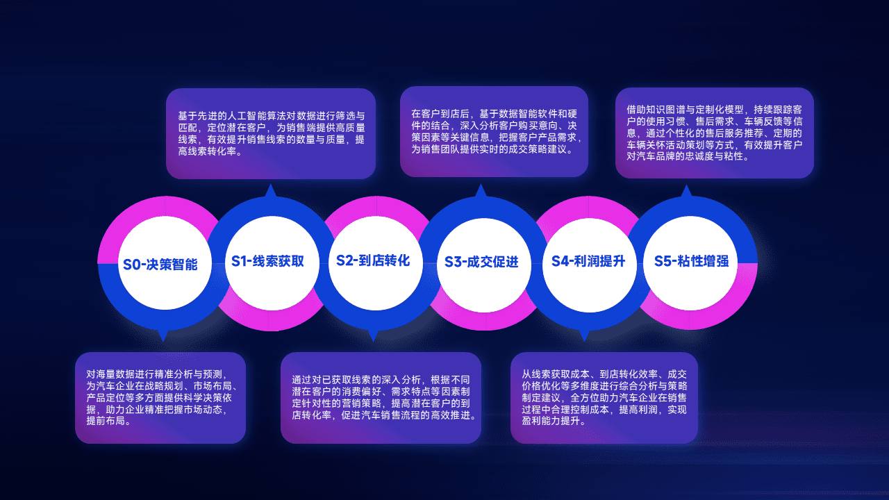 通过拓宽潜在客户来源、、、、优化线索分配并提高到店转化率,,,以增强销售效率。。。同时,,,,利用线索数据不断优化分析模型,,,,有效提升转化率,,,,扩大营销影响力。。。